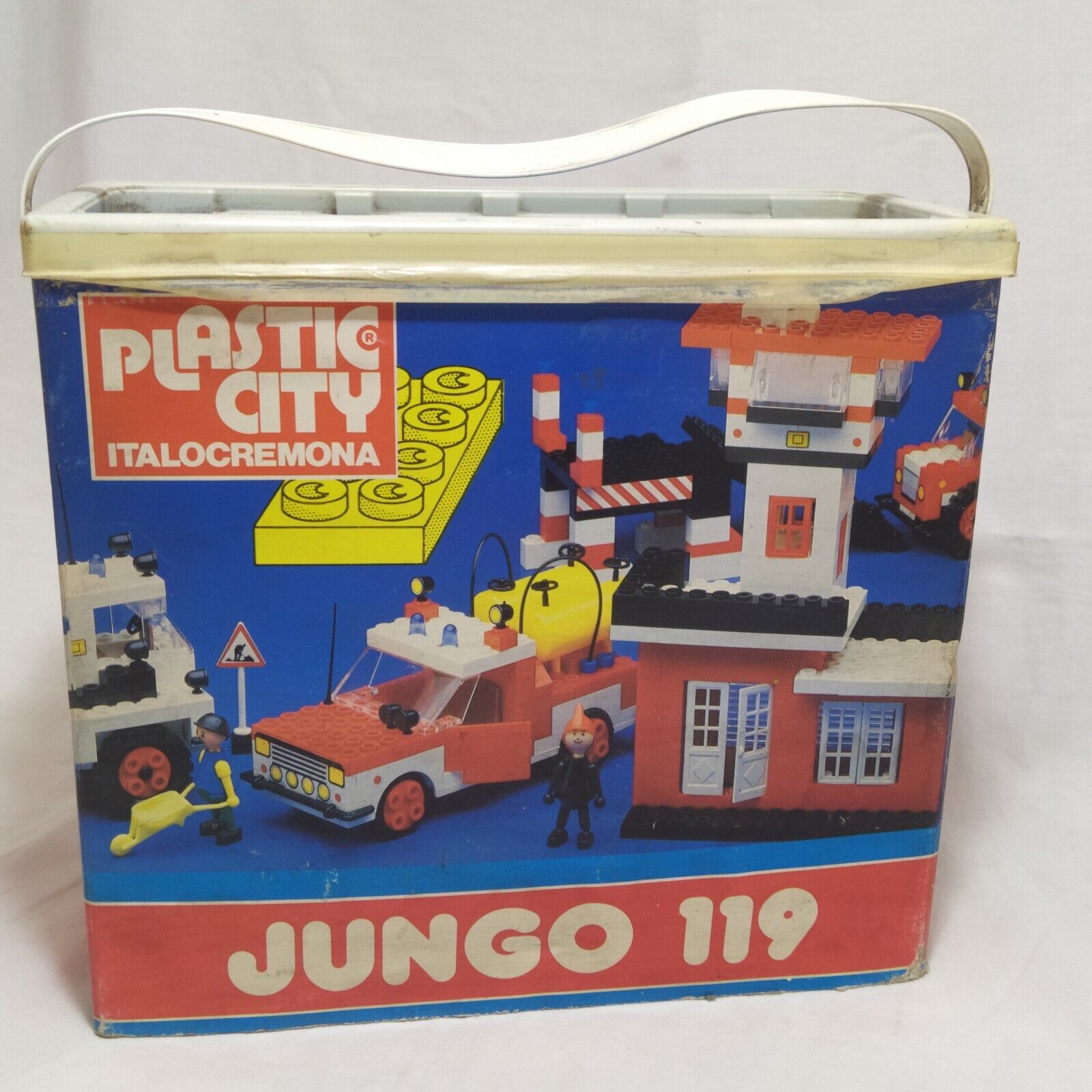 Ecco un super fustino a tema caserma dei vigili del fuoco, con stazione, e mezzi vari, camion, autopompa, aquaplano, barca e mezzo fuoristrada, non manca nulla!
