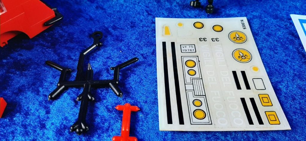 Bellissimo questo mezzo dei vigili del fuoco, piena zeppa di accessori e adesivi con Pompiere pronto all’azione.